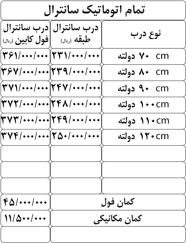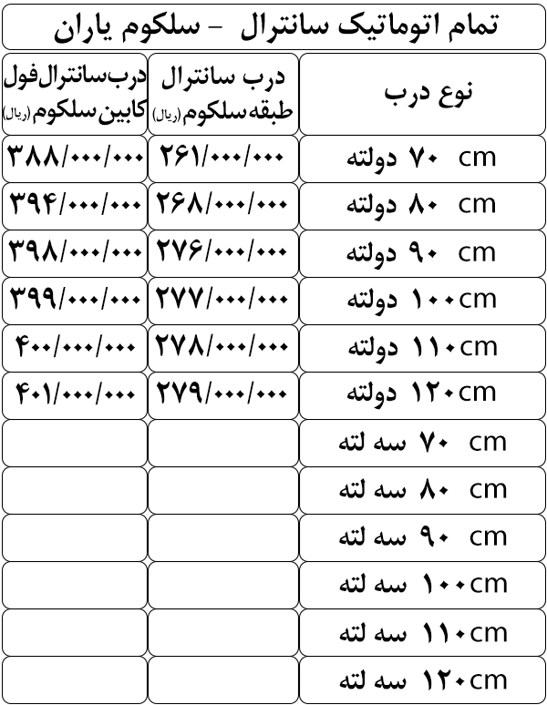 لیست قیمت درب های سلکوم اتوماتیک یاران